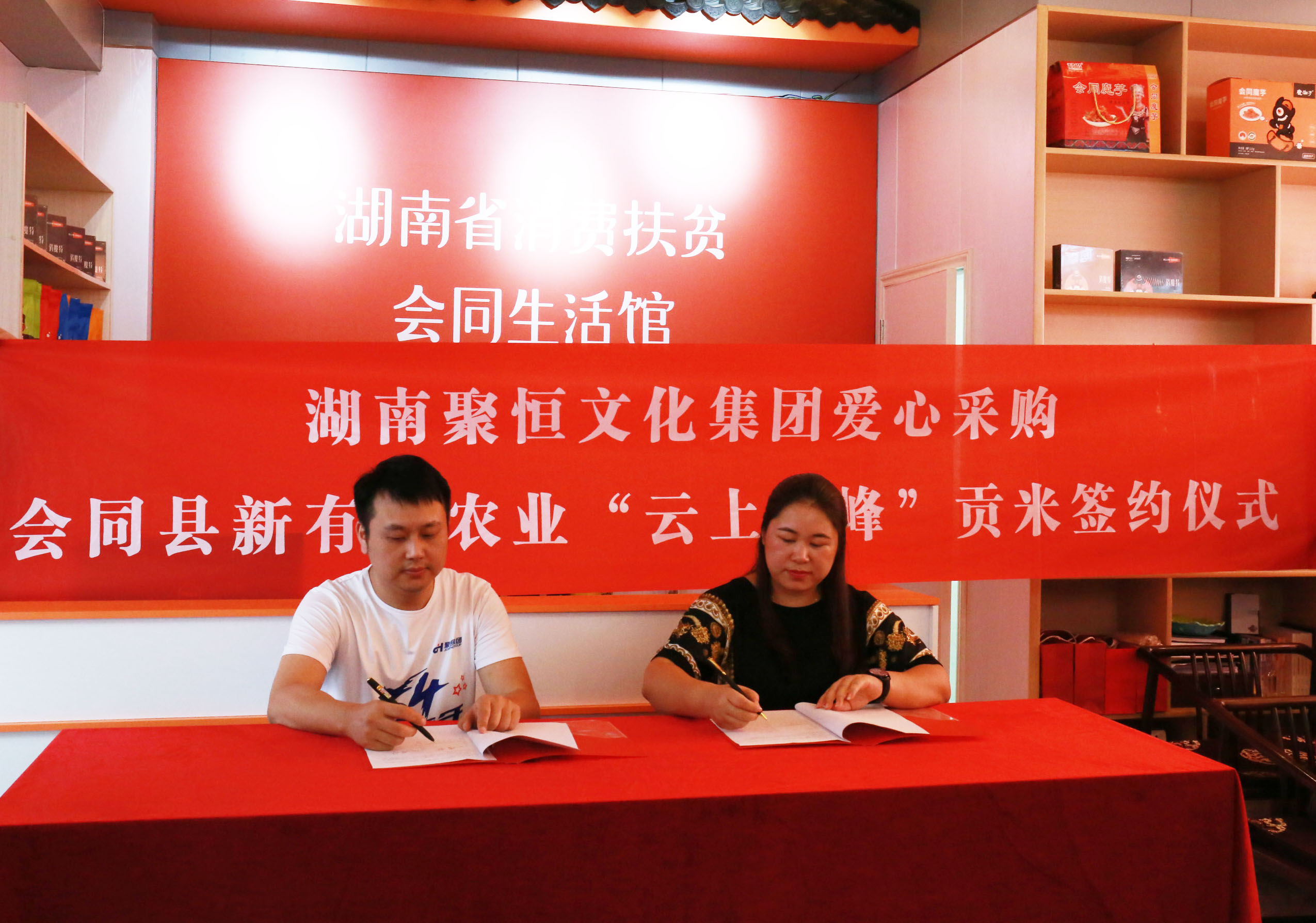 随后,双方领导签约爱心采购方案并合影留念。
